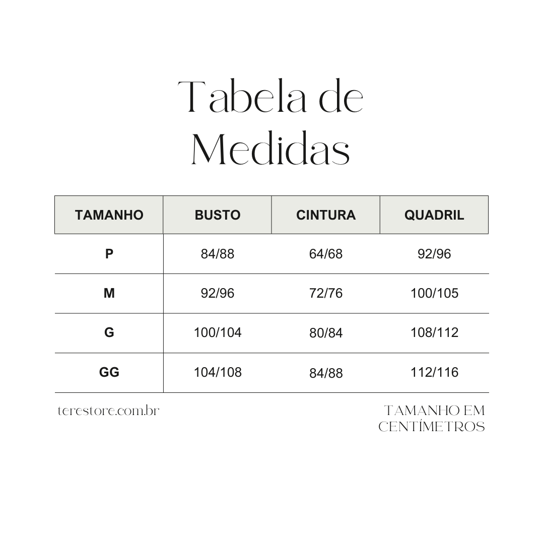 Tabela de Medidas: